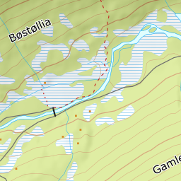 Stien begynner etterhvert å gå slakt oppover, men går snart over til bratt stigning. Følg svak ryggformasjon til høyre for elva oppover. Etterhvert kommer stien til et stort sva over skoggrensen. Ikke kryss over svaet, men følg venstrekanten av dette oppover til ei ur. Kryss over ura og følg flanken til venstre opp til skaret.